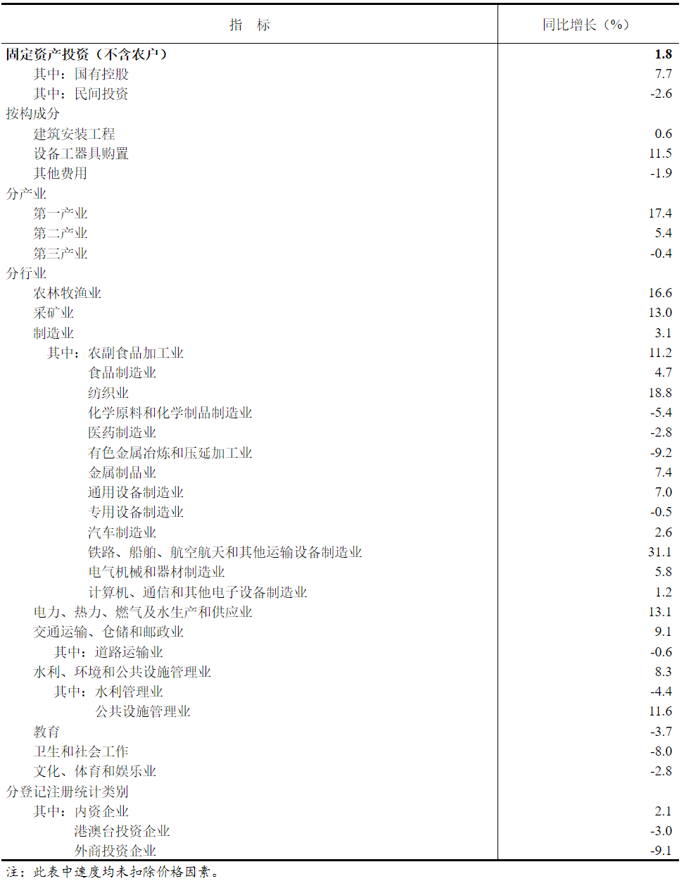 | 东部地区投资 | 增长1.8% |