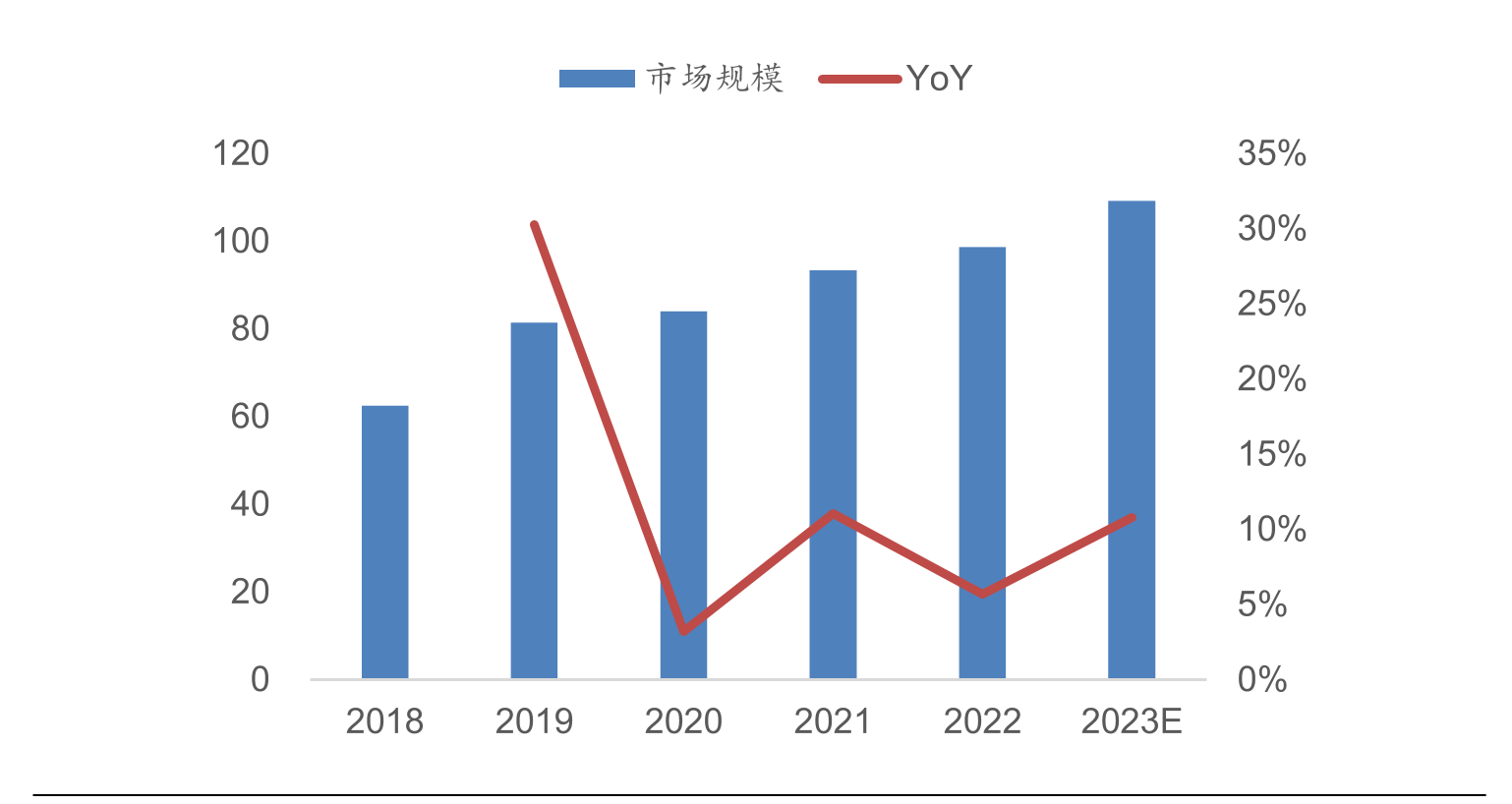 2018-2023年中国光刻胶市场规模预测趋势图 数据如下: