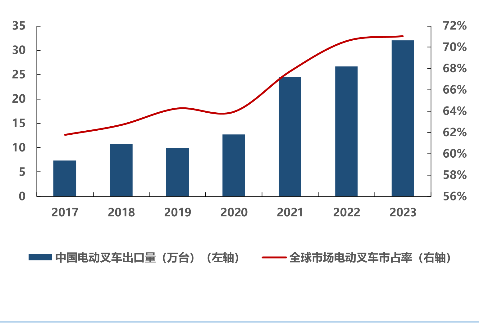 我国电动叉车出口情况 数据如下: